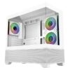 – Refrigeración: Incluye 3 ventiladores ARGB PWM de 120 mm (2× laterales inversos y 1× trasero). Soporta hasta 3×120 mm o 2×140 mm en la parte superior, 3×120 mm en la inferior y radiadores de hasta 360 mm (superior o inferior) o 240 mm (lateral).