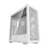 – Diseño: Paneles intercambiables (vidrio templado y acero). Ensamblaje tipo flatpack. Mango incluido (negro o gris según modelo). Soporte de GPU vertical incluido