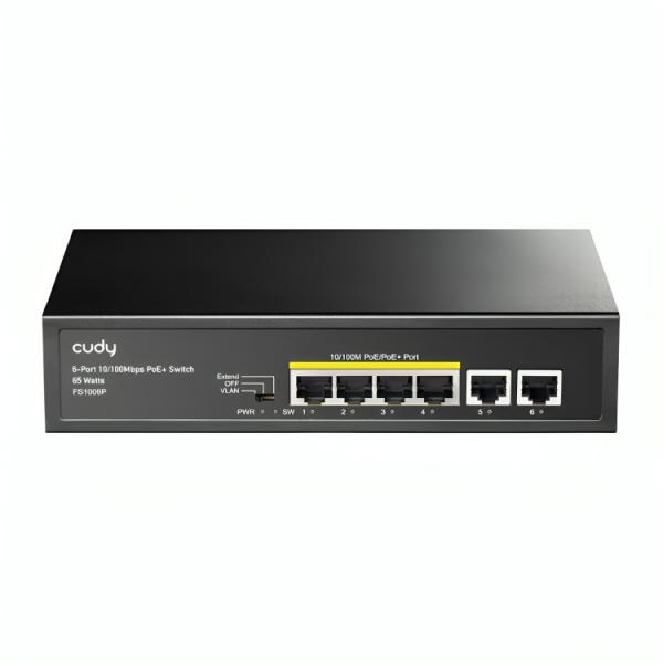 SWITCH CUDY FS1006P 2.0 PUERTOS 4× FE RJ45 POE/2× ENLACE ASCENDENTE FE 120 W 10/100 MBPS NO ADMINISTRABLE